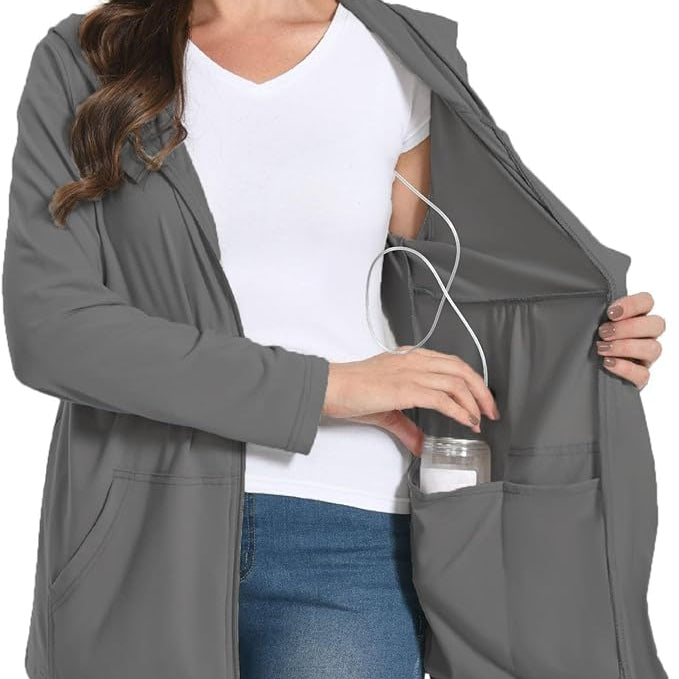Meuponc Mastectomy Hoddies Jacket Coat with Drain Pockets